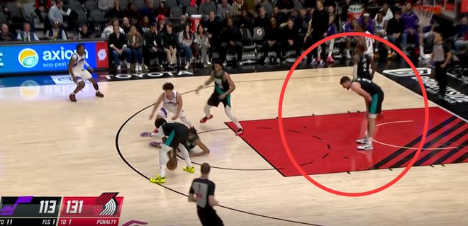 比赛进入第四节后,尽管开拓者领先优势接近30分,早早进入垃圾时间,但斯普利特依然没有第一时间让杨瀚森上场。此时场上的主力中锋**克林根**已经明显体能透支,在还剩约5分钟时就双手叉腰,多次向场边示意,希望被换下休息,但斯普利特依然选择无视。