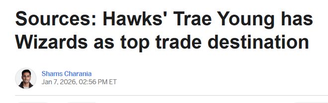 名记Stein早些时候报道,奇才与老鹰就这笔潜在交易展开讨论。尽管其他球队也关注特雷-杨,但奇才是目前唯一被确认的可行下家。特雷-杨愿意前往华盛顿,这对交易推进是积极信号。