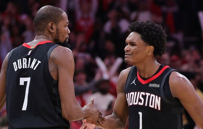 火箭队主教练乌度卡表示,杜兰特近期的稳定表现印证了球队休赛期签下他的决定是正确的:“他的投篮命中率依旧高位,比赛不再单纯依赖运动能力,而是凭借篮球智商和得分选择。他是联盟最有效率的中距离得分手之一。”