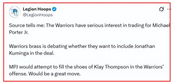 勇士追逐小迈克尔-波特 三方交易或重塑西部格局