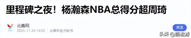 北青网(里程碑之夜!杨瀚森NBA总得分超周琦2025.11.24)