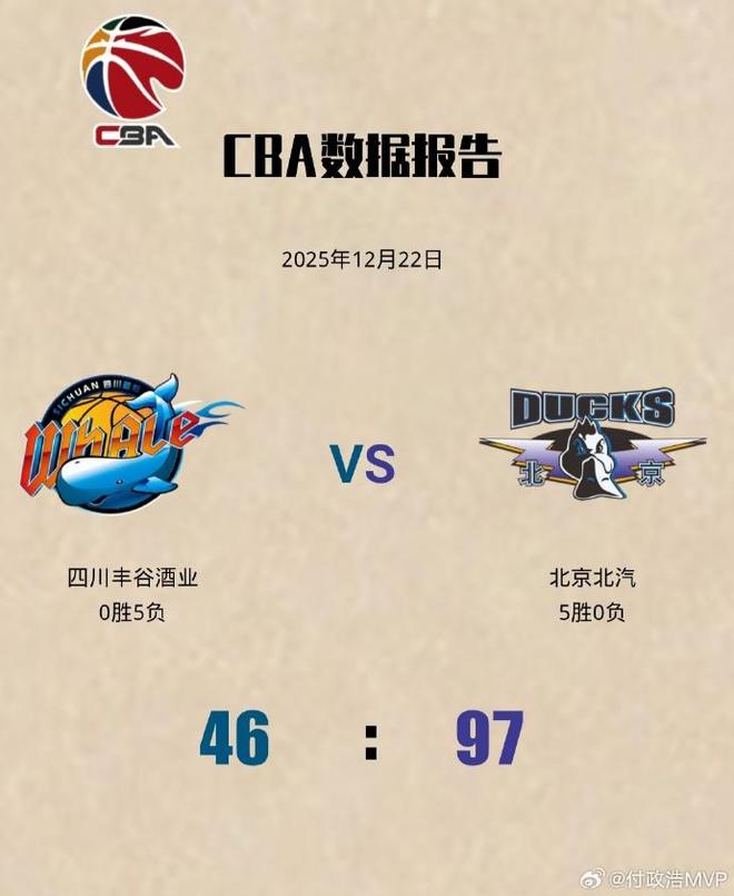 北京时间12月23日,CBA常规赛再现惊人比分:四川男篮全场仅得46分,却以51分之差惨败给北京队。这场比赛不仅刷新了四川队上半场得分最低纪录,上半场仅得到16分,同时也追平了CBA历史单场得分第二低纪录,堪称职业联赛中的尴尬之最。