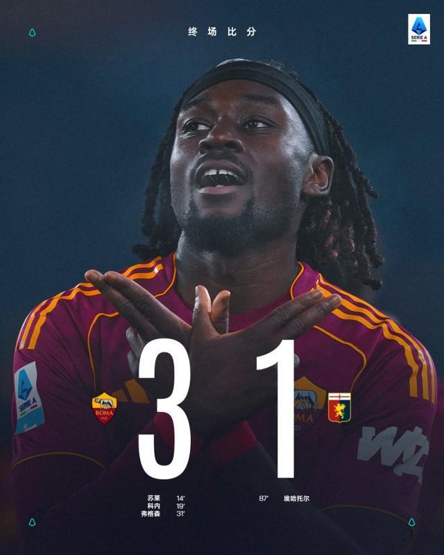 本报讯(记者 李晨)——2025赛季意甲最后一轮,罗马主场迎战热那亚,最终以3-0轻取对手,为赛季画下句点。索莱、科内和弗格森各自建功,这是罗马本赛季在联赛中第二次单场打入三球。