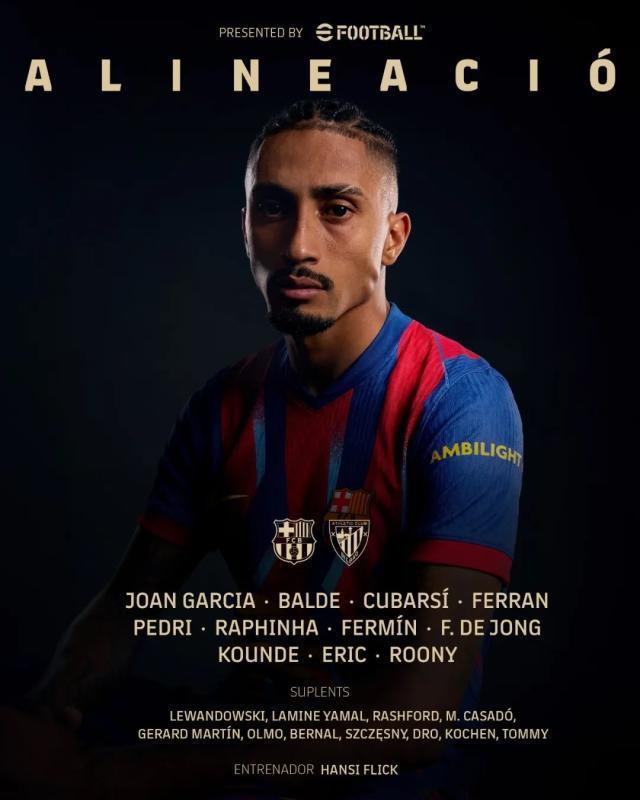 易边再战,第52分钟,巴萨在禁区内连续进攻,费尔明射门被扑出后,皮球击中巴尔德吉弹出,拉菲尼亚跟进补射完成梅开二度,比分改写为5比0。此后,巴萨继续掌控比赛节奏,拉什福德、费兰等人均有破门良机,但未能再度改写比分。
