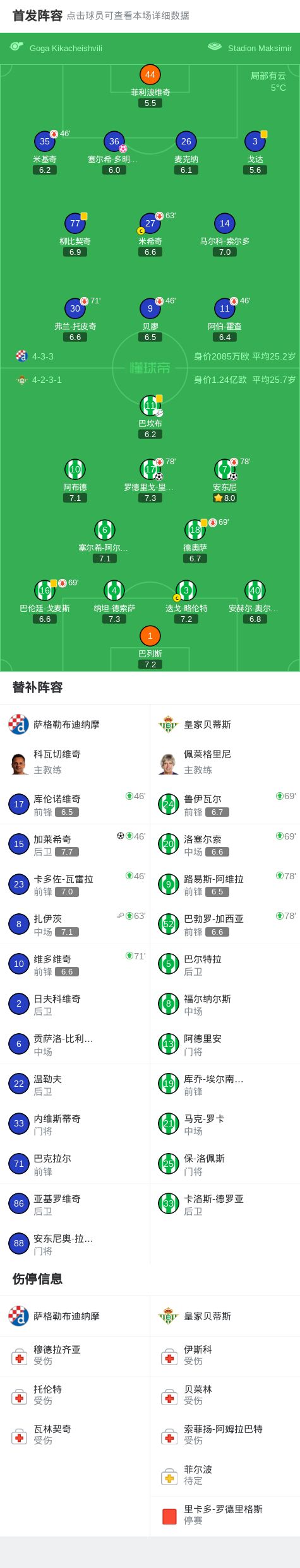 北京时间12月12日,欧足联欧洲联赛小组赛第6轮,萨格勒布迪纳摩坐镇主场迎战皇家贝蒂斯。最终,客队皇家贝蒂斯凭借精准配合和稳固防守,以3-1取得胜利。