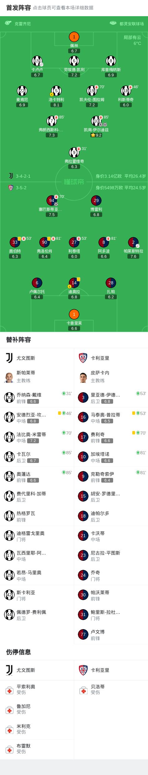 剑南春|尤文2-1逆转卡利亚里,伊尔迪兹双响,弗拉霍维奇伤退