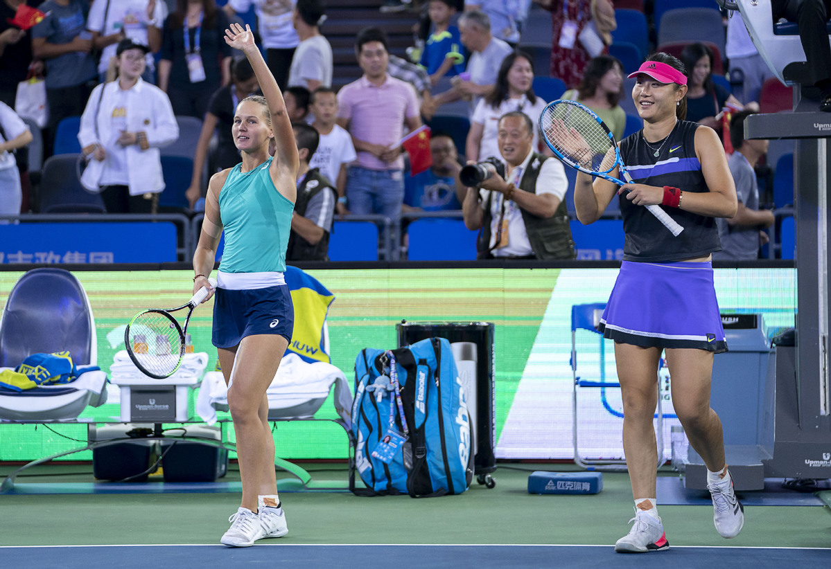 中国武汉-段颖颖成为武汉公开赛的首位中国冠军,她和搭档Veronika Kudermetova在今晚的双打决赛中以7-6(3),6-2击败了Aryna Sabalenka和Elise Mertens。