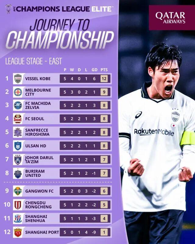 不仅如此,身后紧追的澳超、马来超也在加速追赶,中超的亚冠名额逐渐失去保障。如果本赛季中超在亚冠中继续“颗粒无收”,那2026/27赛季开始时的总积分将可能掉出前6名,而如果此时东亚区的亚冠名额被泰超、澳超等联赛超过,中超很可能在2028/29赛季完全失去亚冠精英联赛的资格,剩余的名额只能参加亚冠2联赛。