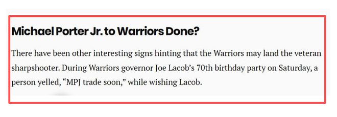 勇士追逐小迈克尔-波特 三方交易或重塑西部格局