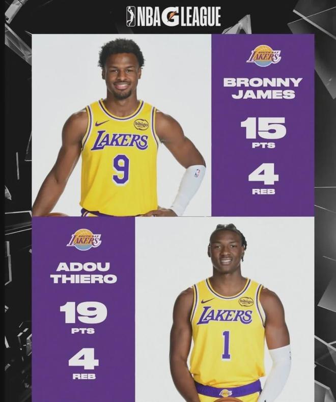 当然,无论在发展联盟多么乱杀,可还是得在正赛有所作为才行,布朗尼本赛季至今为湖人出战10场常规赛首发1次,场均上阵11.1分钟,拿到2.1分0.9板1.8助0.8断;菜鸟赛季则出战27场首发1次,场均上阵6.7分钟,有着2.3分0.7板0.8助0.3断进账。