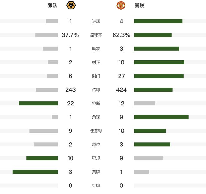 尽管狼队在接下来的进攻中试图反扑,但曼联稳住了阵脚。第82分钟,迪亚洛禁区内的射门被判定为莫斯奎拉手球犯规,B费主罚点球破门,梅开二度,最终曼联以4-1锁定胜局。