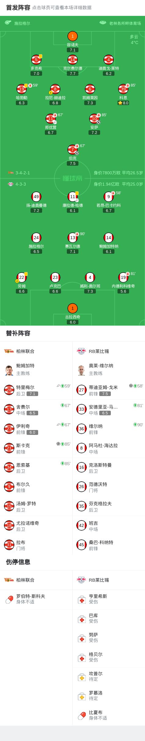 柏林联合在比赛中展现了高效的进攻配合和稳固的防守,多次通过边路传中和中场组织撕开对手防线。RB莱比锡尽管在中段扳平比分,但未能保持持续威胁,最终饮恨客场。