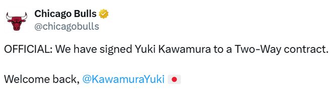 河村勇辉此前曾在2024年7月20日与公牛签下双向合同,但在同年10月18日被裁,未能进入球队新赛季正式大名单。本次重返芝加哥,河村勇辉也将弥补此前遗憾。