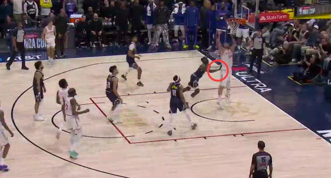 第三次关键判罚发生在距离比赛结束仅47.2秒时。阿门在防守穆雷时触球将球捅掉,在随后的地板球拼抢中,双方身体接触极轻微,但裁判判定阿门进攻犯规。这一错判同样使掘金受益,火箭吃亏。