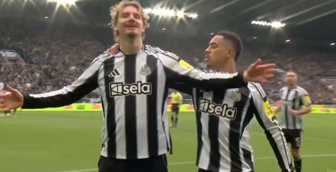 比赛第3分钟,安东尼·戈登在小禁区后点凌空扫射,被门将罗伯特·桑切斯用脚挡出。随后,无人盯防的沃尔特马德迅速跟进补射破门,帮助纽卡斯尔取得梦幻开局。