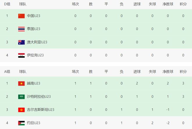 多重利好叠加之下,中国U23迎来冲击开门红的良机。只要稳扎稳打,哪怕以1-0小胜,也将为小组出线奠定坚实基础。