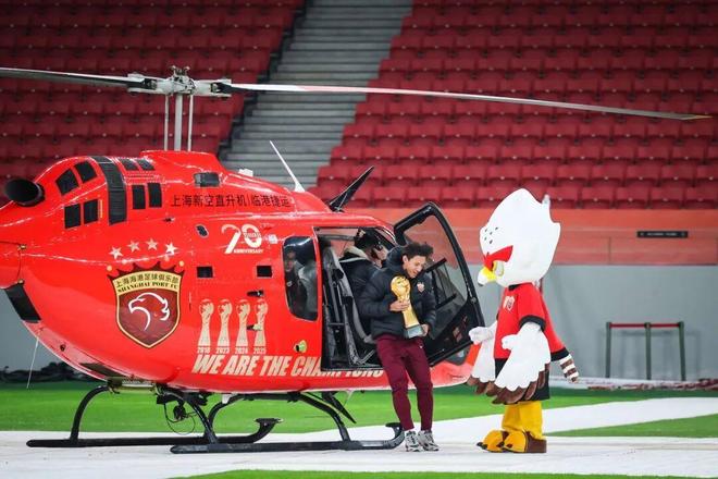总结会开始后,俱乐部吉祥物伊戈率先登场,海港一线队全体教练员、球员与工作人员也在热烈的欢呼声中亮相。随后,一架载着王燊超和中超冠军奖杯的直升机飞抵球场。这不仅是荣耀的展示,更是俱乐部积极探索“低空+足球”体旅融合新范式的生动实践。